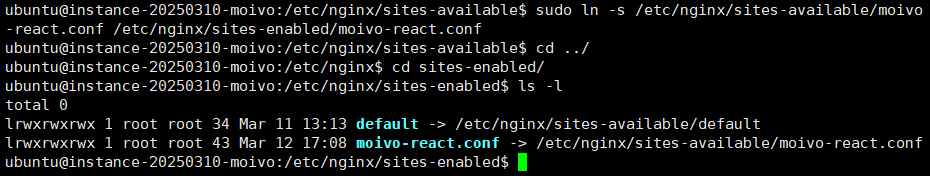 sudo ln -s /etc/nginx/sites-available/moivo-react.conf /etc/nginx/sites-enabled/moivo-react.conf