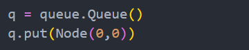 q.put(Node(0,0))