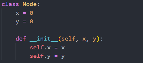 Node 변수 생성 시, 'Node(x 값, y 값)'을 통해 객체 생성