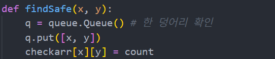 checkarr 변수에 count 값을 저장한다. 해당 부분이 안전 영역임을 의미한다.