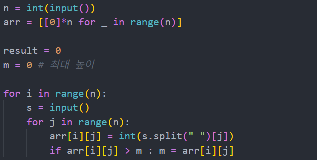 입력값을 받으면서 변수 m에 최대 값을 저장했다.