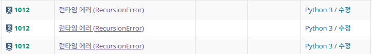 그 중 내 코드의 에러, RecursionError 였다...! 백준에서 재귀 깊이가 1,000으로 되어 있는데 나는 그걸 넘었나보다....