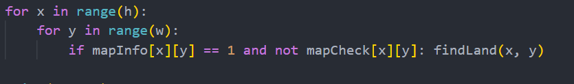 if mapInfo[x][y] == 1 and not mapCheck[x][y]: findLand(x, y)