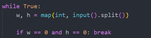 0 0을 만나면 프로그램 종료이기 때문에 while문으로 반복하다가 0 0일 경우 빠져나가도록 구현했다.