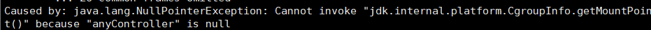 java.lang.NullPointerException: Cannot invoke "jdk.internal.platform.CgroupInfo.getMountPoint()" because "anyController" is null