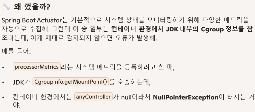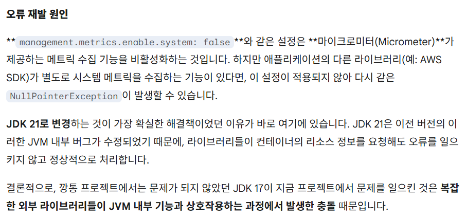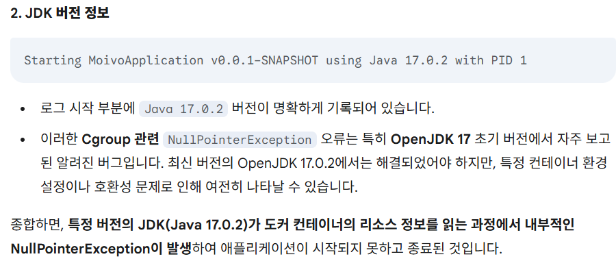 # JVM 옵션 설정: Cgroup 관련 NPE 오류를 해결합니다.