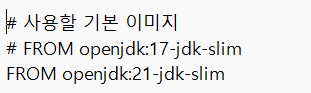 도커파일이랑 build.gradle의 21로 수정하여 다시 해봤다.