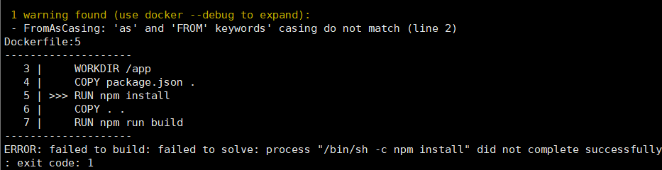 npm install 오류는 node 버전임을 깨달았으니 도커파일에서 노드 가져올때 20으로 변경해주면 된다.