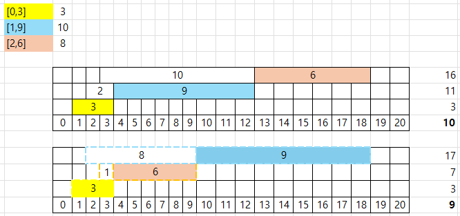 현재 시점인 endTime은 15이며 total은 5 + 11 = 16이다.