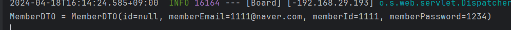 System.out.println("MemberDTO = " + memberDTO);