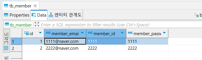 Table 이름: tb_member
