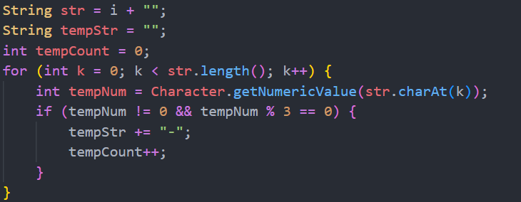 만약 35일 경우, tmepCount = 1, str 길이 = 2 으로 result에는 "-"를 더하게 된다.