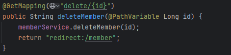 - 회원 상세조회 URL : member/{id}, 컨트롤러에서 해당 함수 : findById