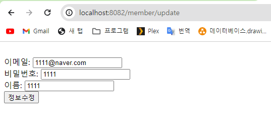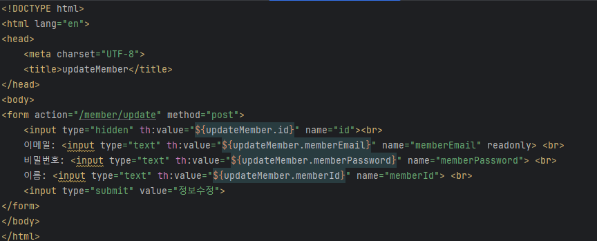 5. updateMember.html (1번) 화면 불러옴.