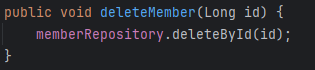 2. memberRepository의 deleteById 함수 호출하여 해당하는 id(PK) 삭제