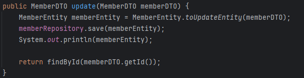 - MemberEntity의 toupdateEntity 함수 호출