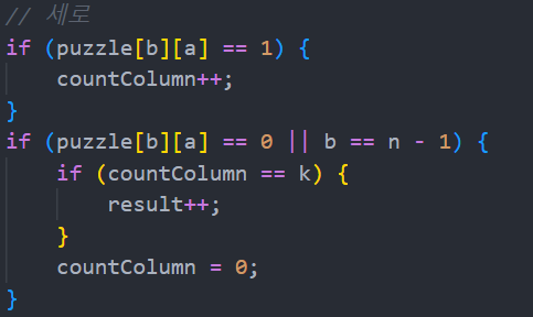 또한, 다른 값을 비교하기에 countRow가 아닌 countColumn이라는 변수를 사용한다.