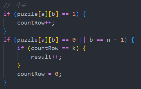 또한, 다른 값을 비교하기에 countRow가 아닌 countColumn이라는 변수를 사용한다.