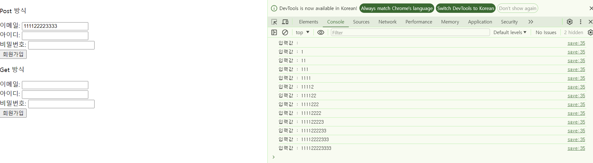console을 보면 글자 하나당 출력되는 것을 볼 수 있다.