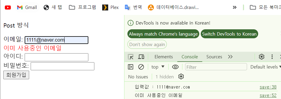 2. Boolen 형태인 checkResult 변수를 통해 동일한 email 값 확인