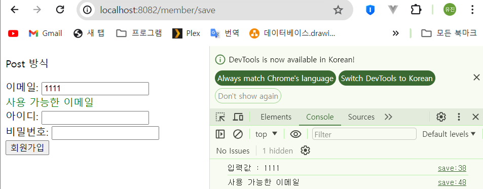 - memberService의 emailCheck 함수 호출하여 동일한 email이 존재하는지 확인
