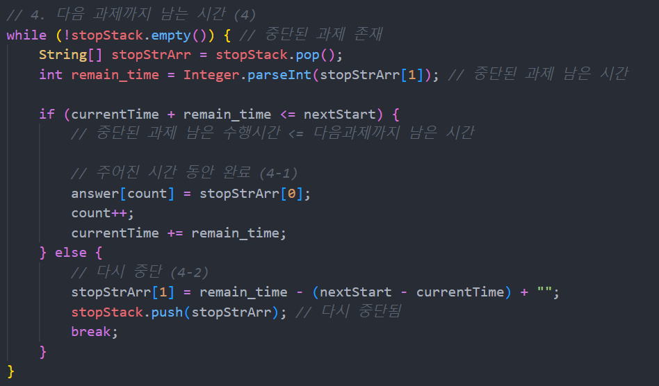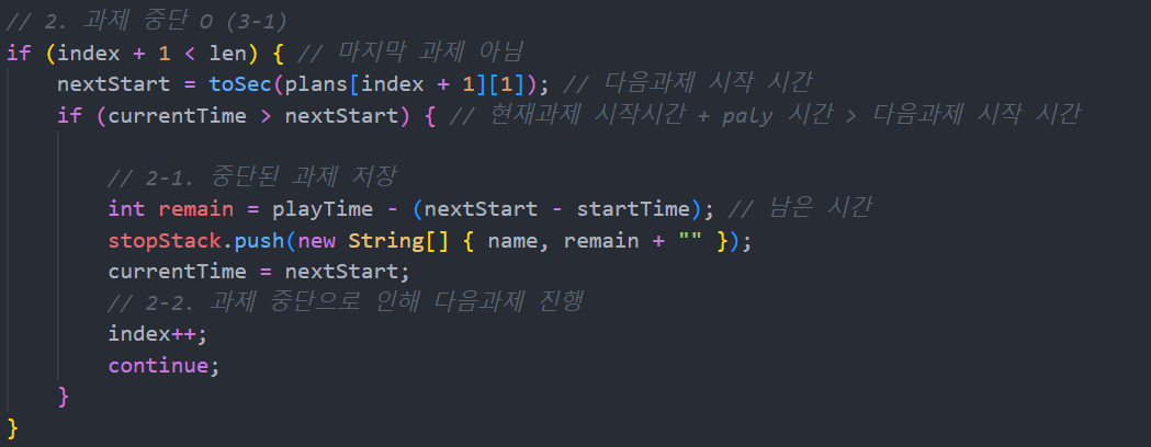 이 부분은 주어진 plan 배열의 모든 과제들을 한번씩 수행했음에도 불구하고 중단된 과제 있을 경우에 진행하게 된다.