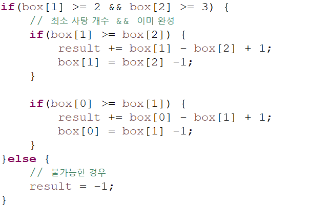 따라서 2번째 박스에서 5 - 3 + 1 = 3개를 먹어야 2번째 박스에 2개 남는다.