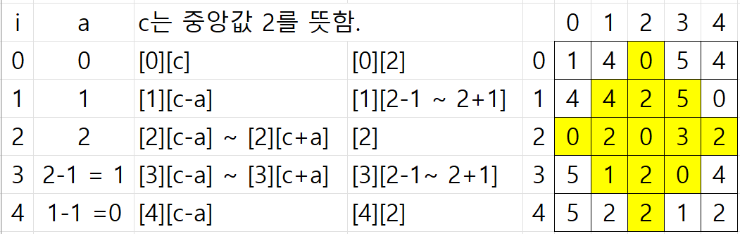 마지막 [i][center]값은 중간에 계속 필수적으로 더하여야 하는 값을 의미한다.