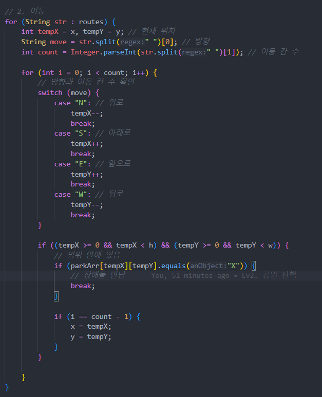 [프로그래머스] 공원 산책 (Java, Level.1) 본문