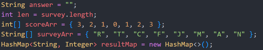 성격 유형이 저장되어 있는 surveyArr 배열을 기준으로 for문을 사용하였다.