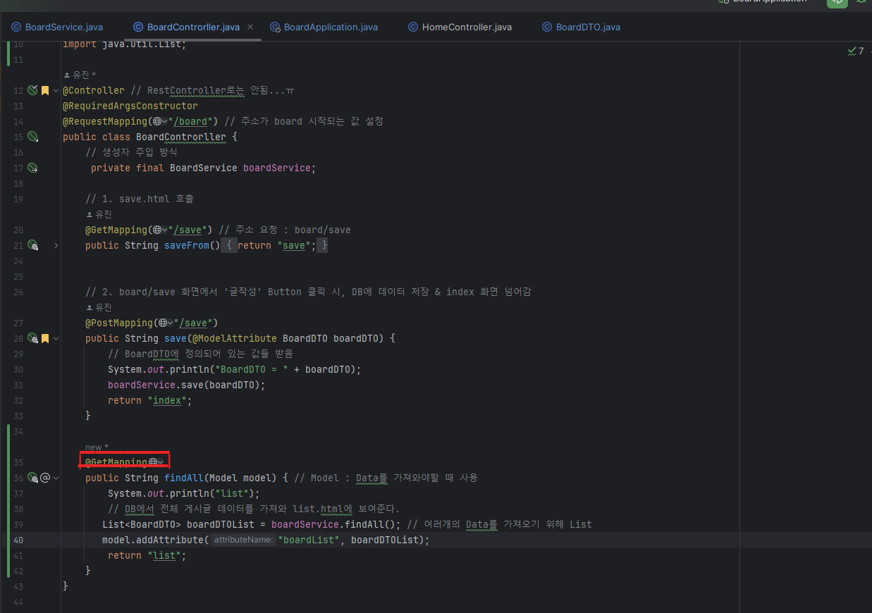 따라서 http://localhost:8082/board 경로로 이동하고 싶을때는 GetMapping만 사용한다.