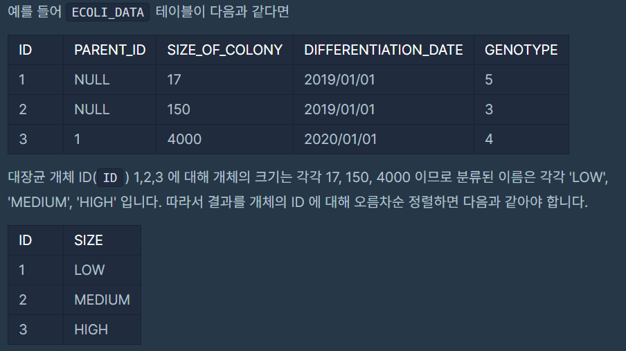 [프로그래머스] 장균의 크기에 따라 분류하기 1 (MySQL, Level.3)