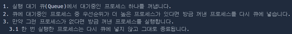 현재 프로세스의 우선순위보다 더 높은 프로세스가 있다고 판단