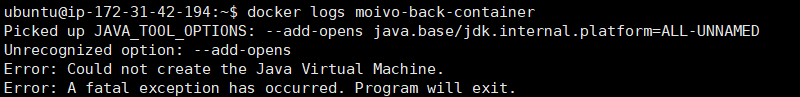 docker run -d -p 8080:8080 --name moivo-back-container -e JAVA_TOOL_OPTIONS="--add-opens=java.base/jdk.internal.platform=ALL-UNNAMED" moivo-back-container